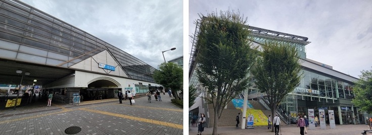 写真左側が経堂駅 右側が経堂コルティ