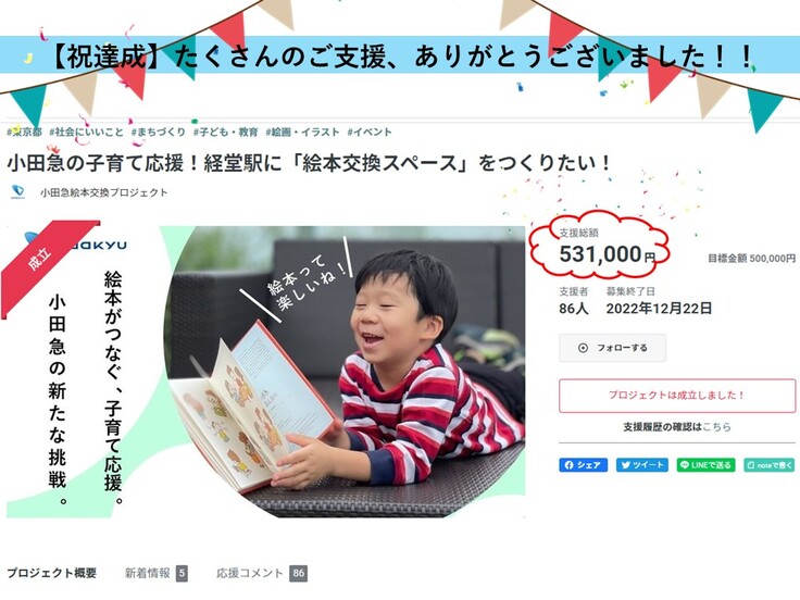 【プロジェクト達成のお礼】と【絵本交換スペース開設のご報告】