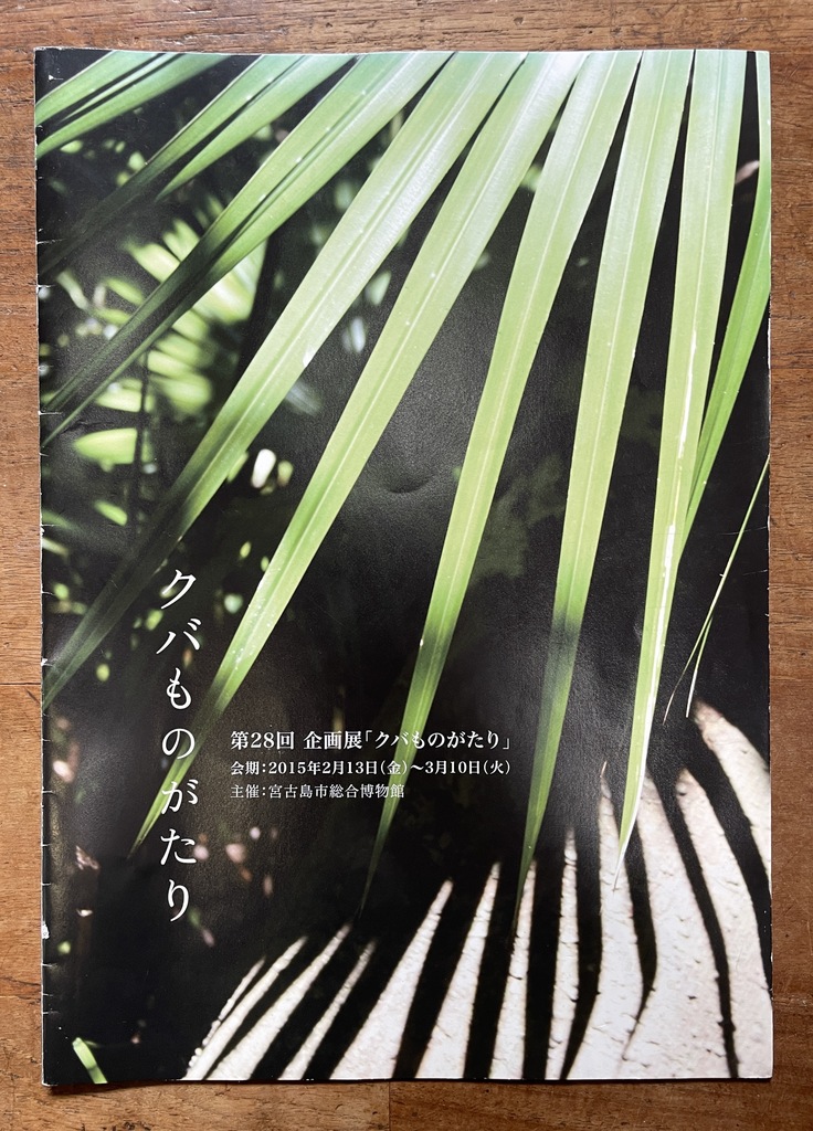 そんな中、宮古島市総合博物館から、展示会の依頼を受けました。私はこの展示会に向けて、博物館のキュレーターの方と共に島内のクバの現状を調査し始めました。この調査を元に博物館から「クバものがたり」(リーフレット)が発行されました。リーフレットは、とても素晴らしい出来栄えで、今もなお多くの人々にクバの事を伝える役割を果たしています。