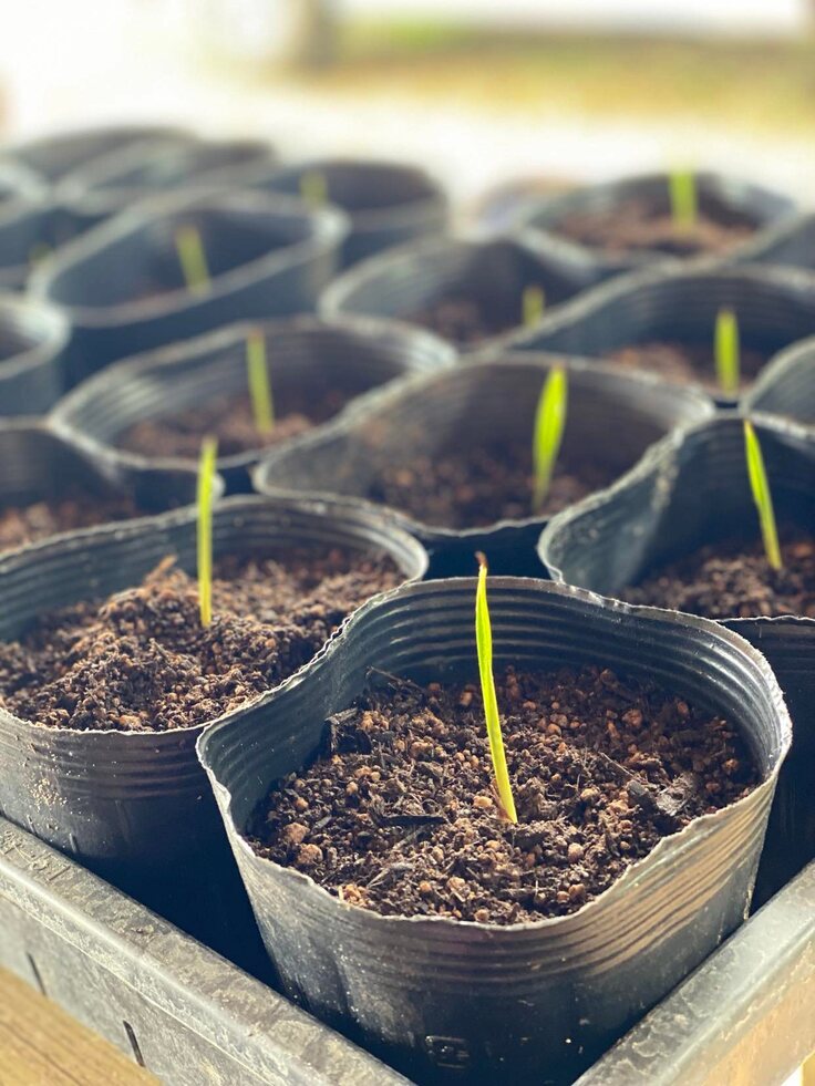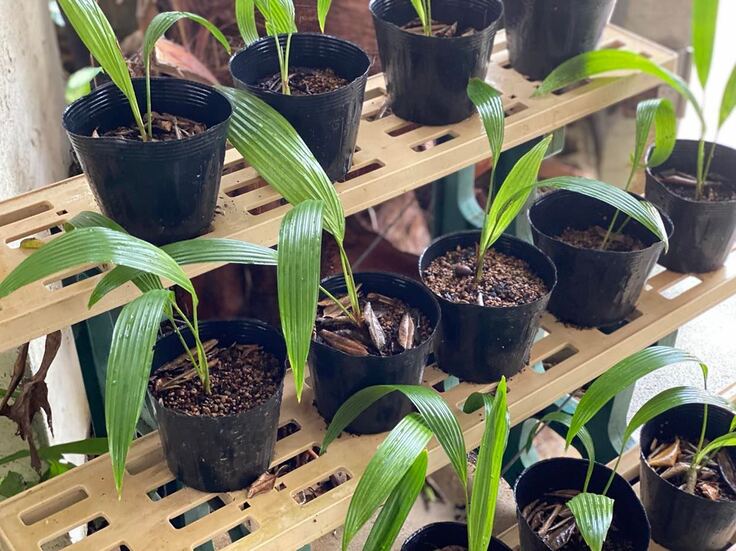 私は、クバの杜再生を夢見て、クバの種を発芽させ、クバの杜の一部になるように育てています。