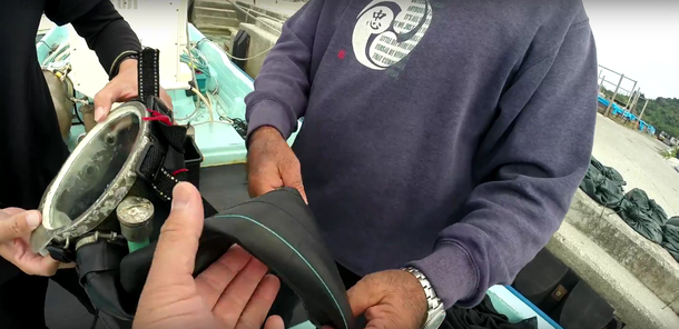 その潜水マスクはボロボロ。お世辞にも、「これが今も現役のもずく漁師達に本当に使われているのか…」と思うような、信じられないようなマスクでした。