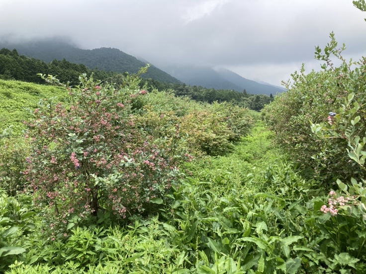 専門家曰く、ブルーベリーの地植えは栽培が難しく120本もの木を自然農法で毎年実をつけることは大変珍しいとのことでした。恐らく、土壌が良く日当たりや風通し、高所の気温がブルーベリーに最適な環境なのだと思います。