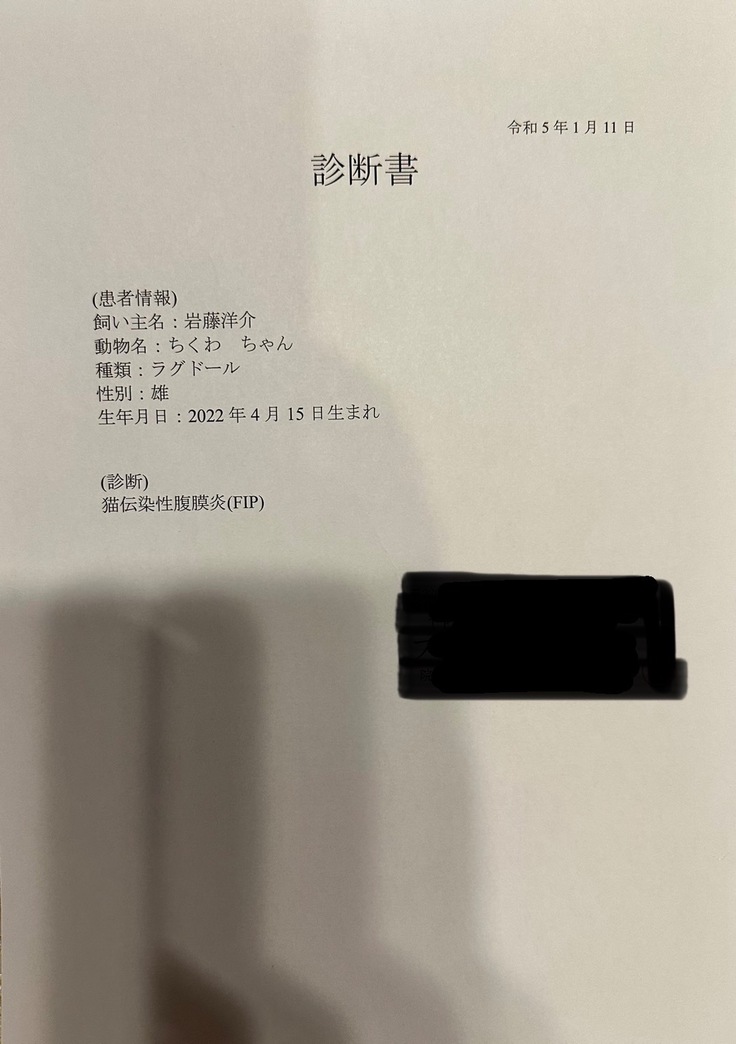 猫伝染性腹膜炎を患ったポンちゃんの明日をつないで頂けないでしょうか