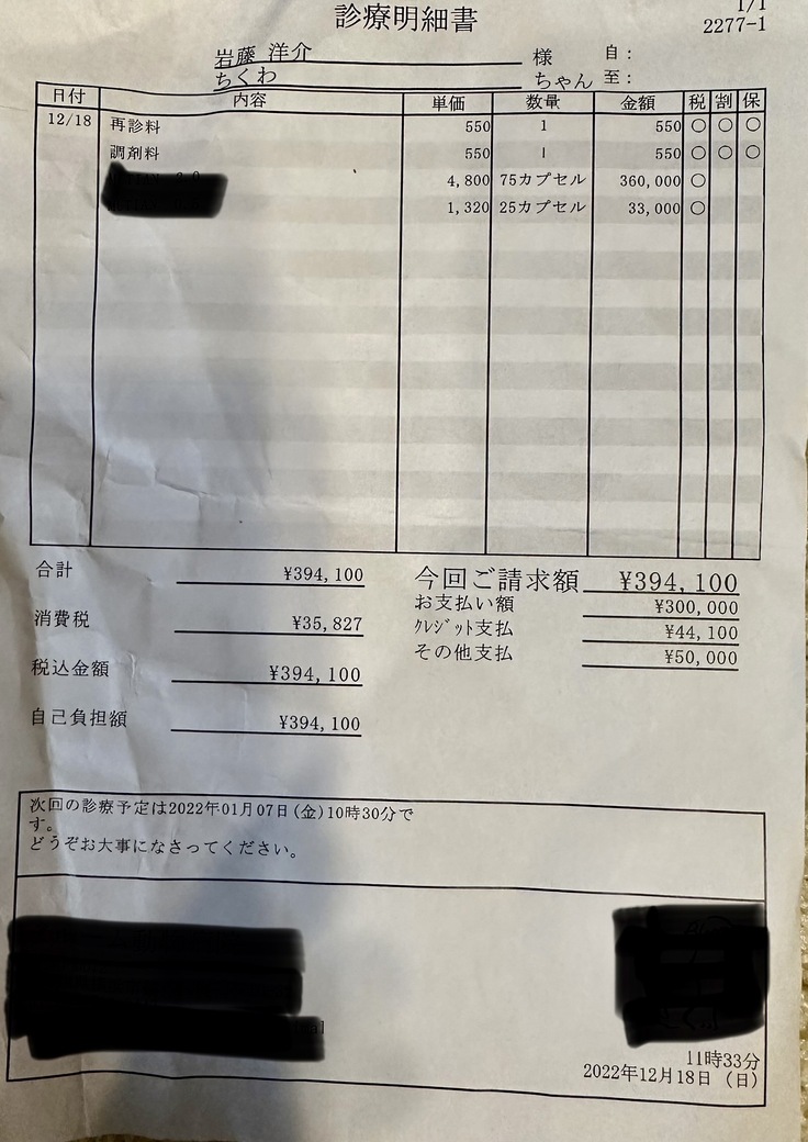 診断から1週間後の12月18日に、3週間分のお薬をもらいました。