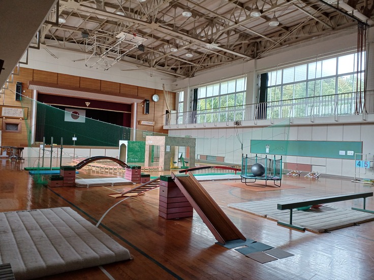 広い体育館の中で、たくさんのミッションにチャレンジしていただきながらドローン操縦を楽しんでいただきます。こんなことをいうのはなんですが、ドローンを操縦を楽しむのにここよりも面白い場所があるのだろうか、と感じるぐらい絶妙にいろいろな遊具がミッション性をかもしだしています。まちがいなく楽しい時間になると思います。