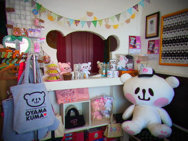ここでは、おやまくまのテーマカラー「白とピンク」を基調におやまくまグッズはもちろん、