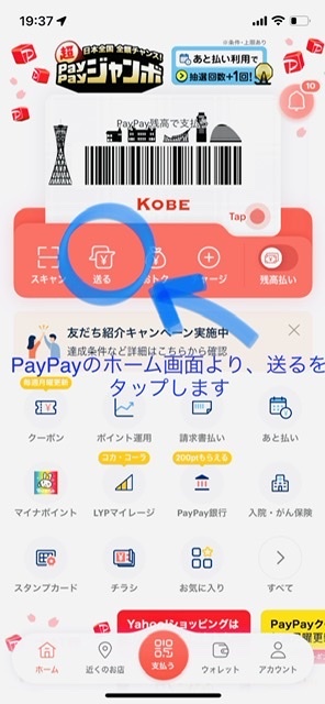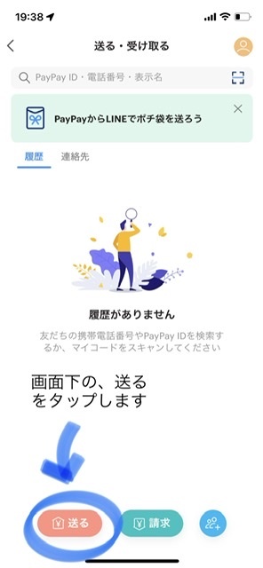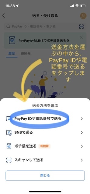 3.送金方法を選ぶの中から、PayPay IDや電話番号で送るをタップします