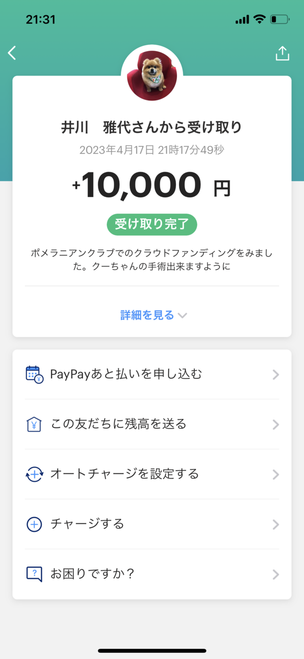井川雅代様より代理支援を受け付けました。お預かりしたご支援は私が責任を持ってREADYFORクラウドファンディングへ振り込み致します。