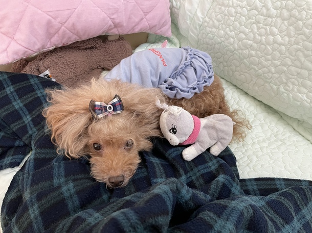 お家の中でうんちをする習慣が無かったので戸惑いがあるようで、苦しそうにシクシクしているうーちゃんです😢