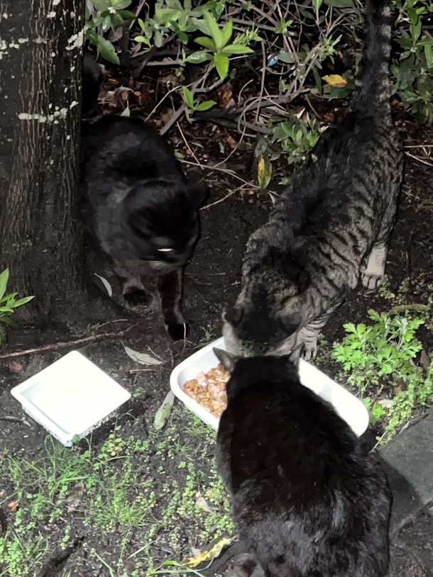 雨が降りビショビショになった猫ちゃん達が、お腹を空かせて待っていました。