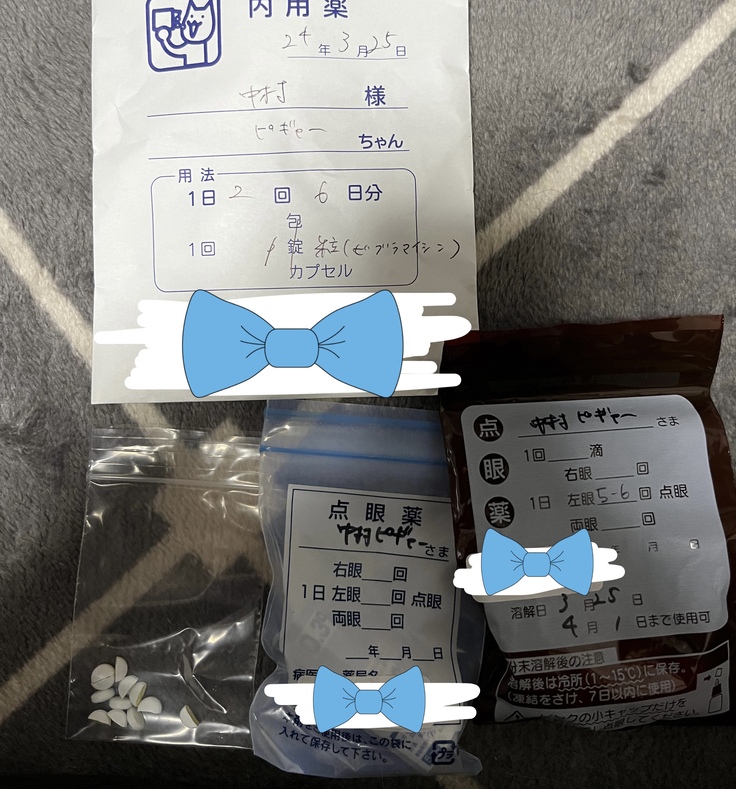 ピギャーこれからしばらくは目薬と飲み薬を頑張ろうね