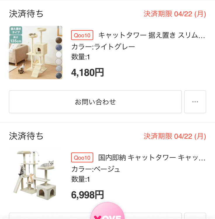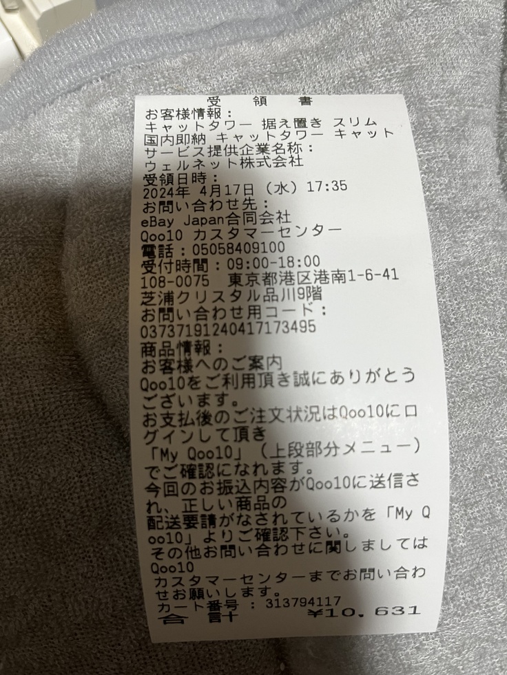 6998円のキャットタワーは母と2人でお金を出し自費での購入です