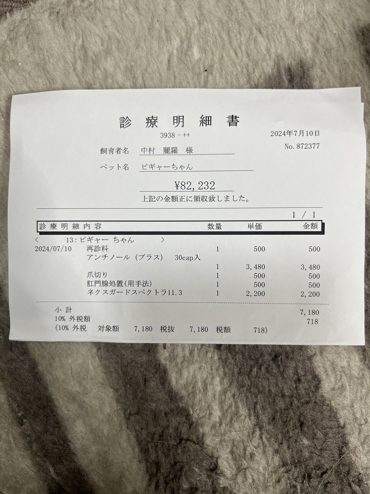 明細書の金額がとんでもない額になっているのは受付の方が打ち間違えた為です🙇♀️