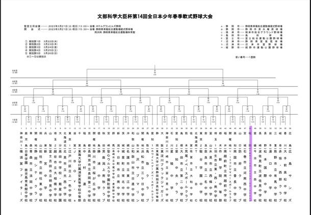 ついに文部科学大臣杯第14回全日本少年春季軟式野球大会の組合せが決まり初戦は3月22日13時開始予定となりました!