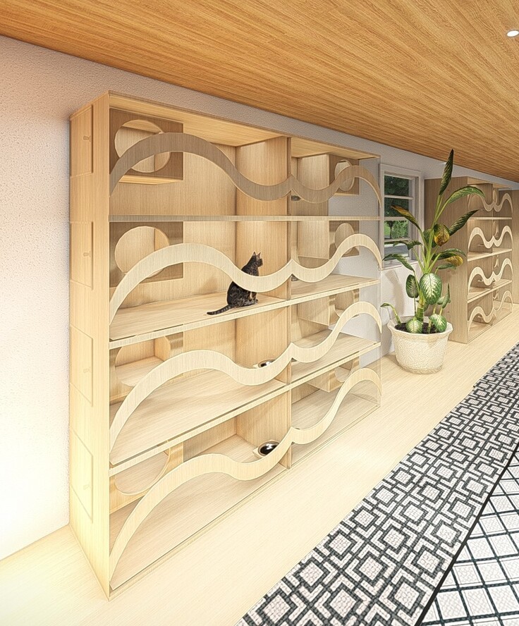 そこで解決策として全体・特に保護スペース・譲渡スペースに防音・防臭対策を追加施工することで、建築及び保護猫活動のご承認を頂くことができました。