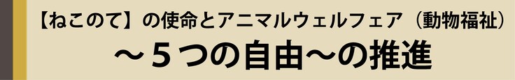 しかしながら、上記の通りで動物の「自然な行動習性」や「生存する権利」が、人の住環境や社会制度と合わずに、アニマルウェルフェアが脅かされている現実や課題もあります。【ねこのて】では、それらの現実や課題について、「共存共栄」の精神で、改善に向けて取り組んでいきたいと考え、課題に取り組んでいる団体と共に、日本の動物福祉の向上に励んで参ります。