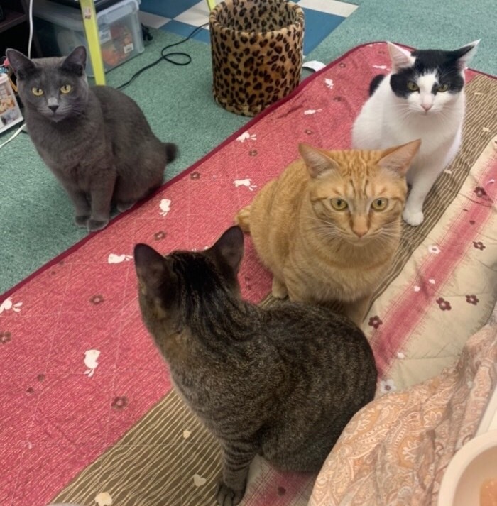 保護猫は、ご飯の量チェック、尿、ウンチの状態チェック、少しでも異変があると提携している熊本市の中央動物病院に相談し受診させます。