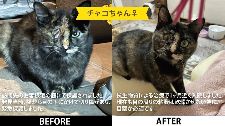 いくつかのパターンがあります。具体的には、ホームページより、餌やりの方から問い合わせがあり保護。イベント先のポスターを見て相談を受けて保護。怪我や病気をしてる子を見つけて、数日観察し保護。他の個人活動家さんからの相談受けて保護。等が挙げられます。