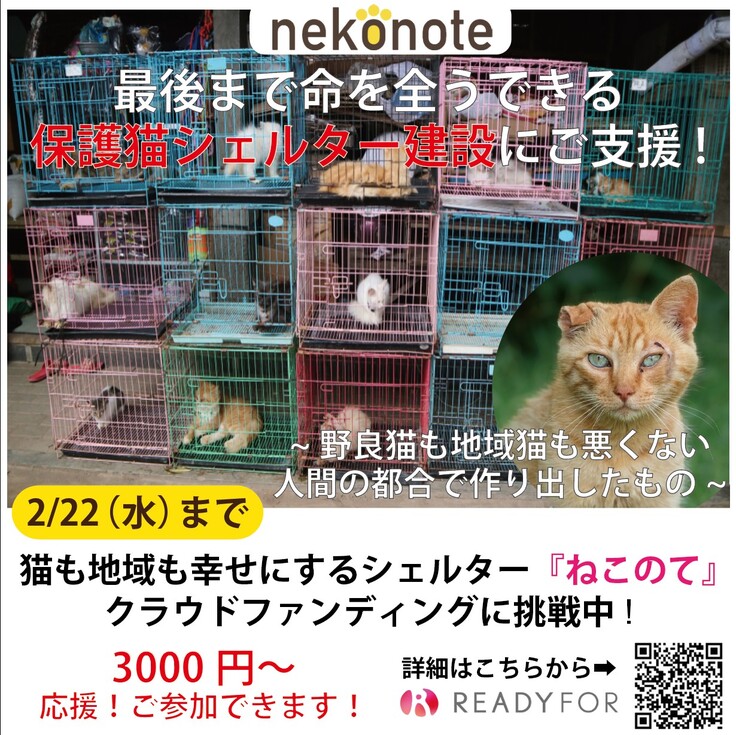 活動当初は、周囲からの理解を得られず馬鹿にもされましたが、増やさないための活動を私達が率先して行い、熊本県・殺処分ゼロに向けての一連の活動を一貫して行えるスペースがあれば、より効率的に運営が進められると考え、保護猫シェルター第一号として安住の地『ねこのて』を作ることを決め、個人レベルでの活動の幅を越えて、想いを共にする仲間と共に「一般社団法人nekonote」を設立しました。