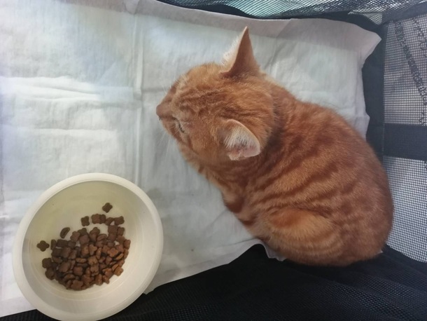 カラスにつつかれていたとメモに書いてあったので見てもらったら頭がボコボコしていたらしく入院して病院でお世話してもらっています。
