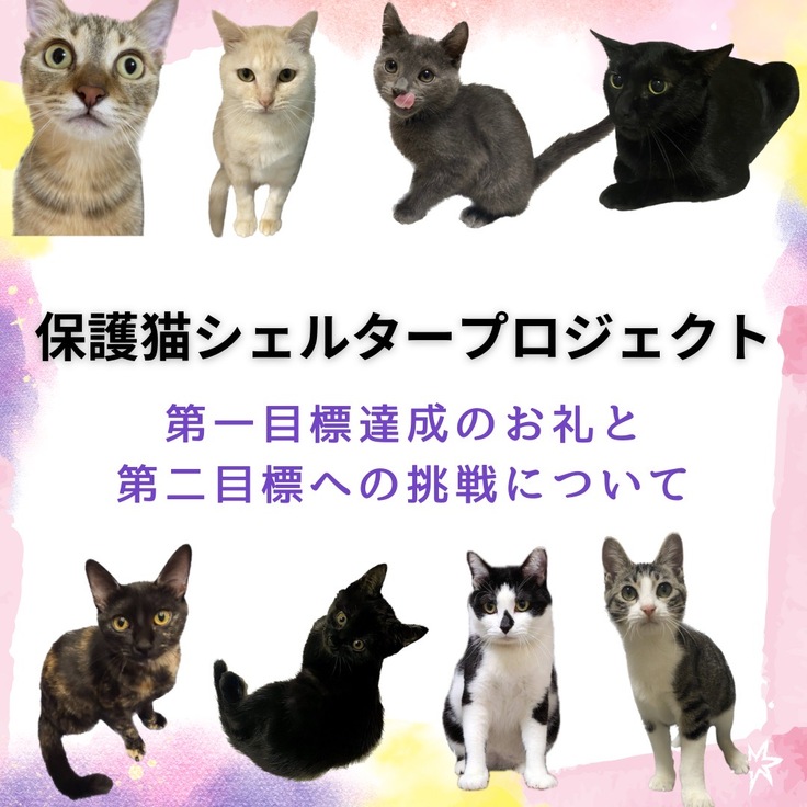 そのためにもネクストゴール600万円に挑戦し、第二目標も達成させてシェルターへの移転と猫たちがストレスのない環境設備を整えることが次の目標です。