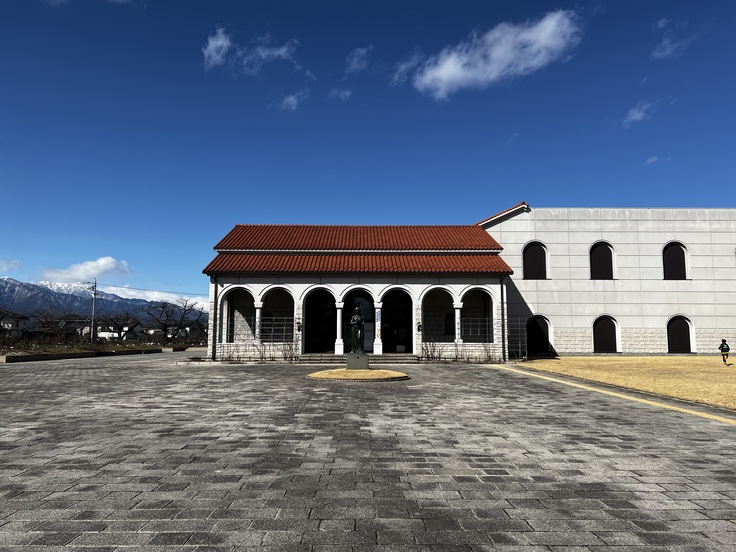 平成4年4月18日、豊科近代美術館として開館。平成17年、安曇野市 豊科近代美術館に名称変更。飛騨山脈の山麓に広がる安曇野の地、豊科地区の文化施設ゾーン のメイン施設として整備されました。