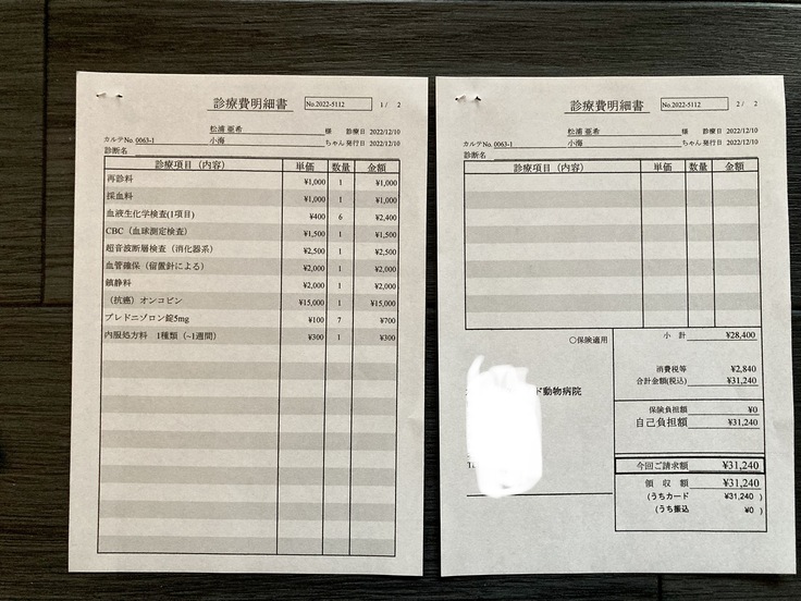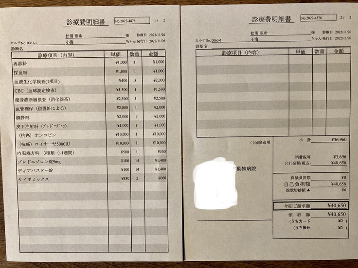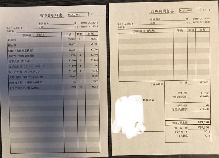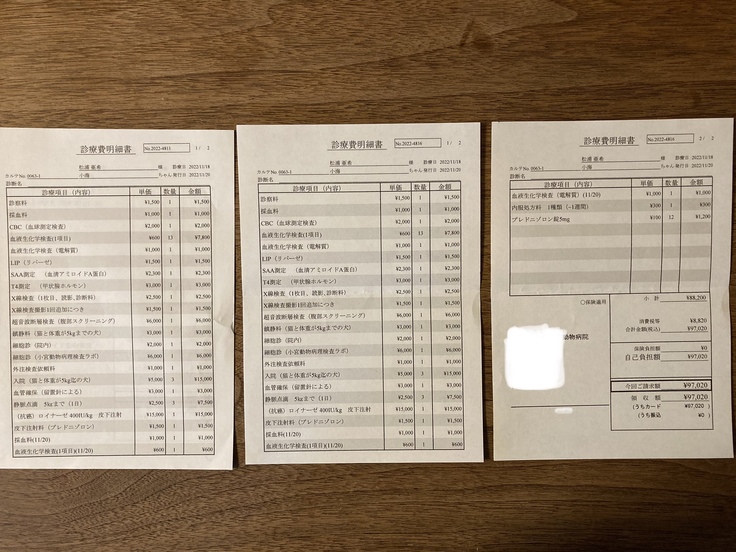 ※動物病院様より、診療明細の掲載承諾を得ています。