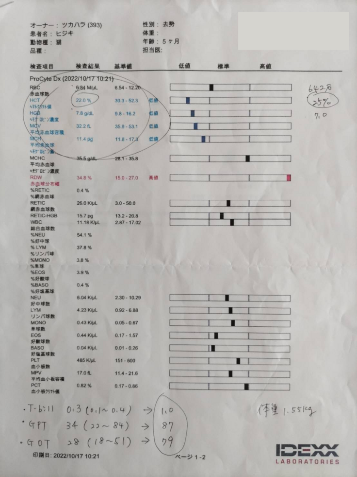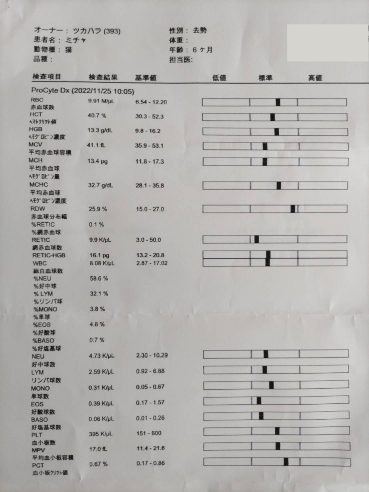 まだ貧血が出ていますが、前回よりも数値も良くなってきています!血をつくる組織がたくさん働いてるから徐々に貧血も良くなるよと言われました!