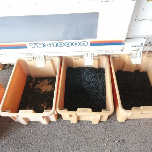 乾燥させた黒大豆をまず選別機で大中小の3種類の大きさと2級品に選別します。