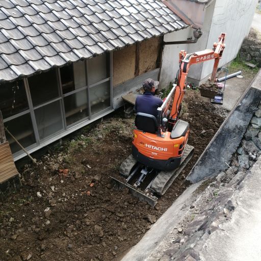 トイレは多目的トイレではなく普通のトイレですが、広くて明るいトイレをオーダーしています。そのために電気も引きました。窓も3つもつけてくれました。配管工事は私の希望で下水道まで引きます。小型重機でしますが、小型でも大きいです。