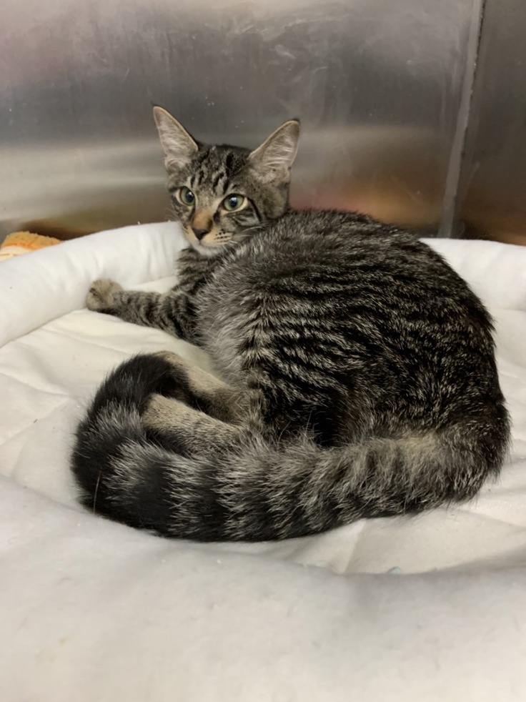 とても人懐っこく家に帰ったら、ひざの上に乗って来てぐるぐる言ってくる甘えん坊。ネズミの形をしたおもちゃをおいかけて遊ぶやんちゃな男の子です。