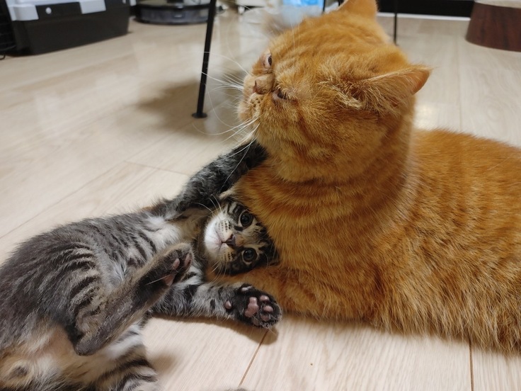 現在は他の猫との接触ができず、部屋を隔離していますが、もともとは4兄弟で2匹を私が引き取っています。兄弟仲良く元気な時は追いかけて遊んだり戯れあって遊んだりしていました。先住猫とも舐め合ったりしとても仲良く過ごしていましたが84日間、投薬中は部屋を隔離し、とても寂しい思いをさせているかと思います。投薬が終わり元気になったら兄弟とも会わせ、一緒に遊ばせてあげたいです。
