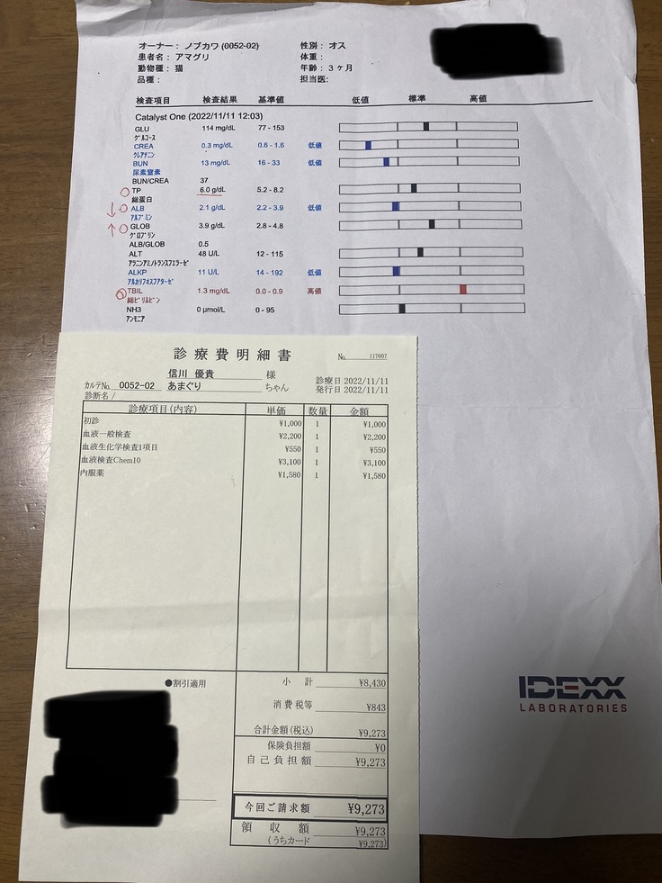 無事病院に到着し検査と治療の為そのまま入院、手遅れになるといけないのでFIP治療、投薬を開始しました。