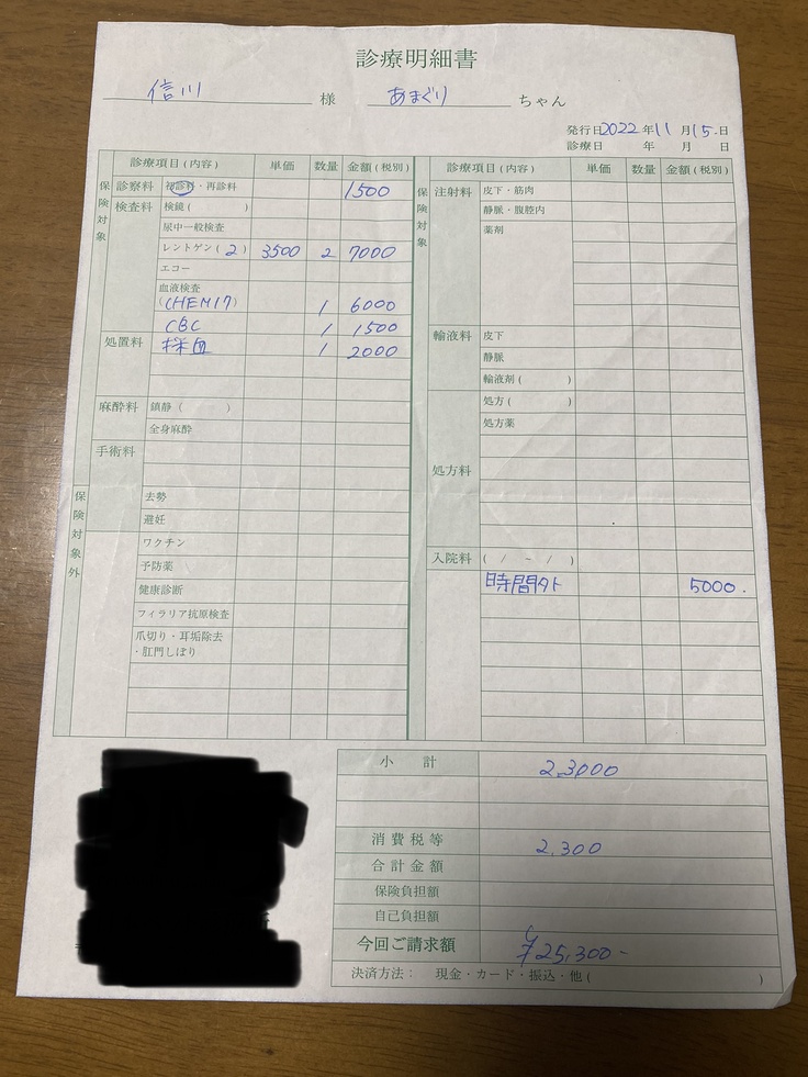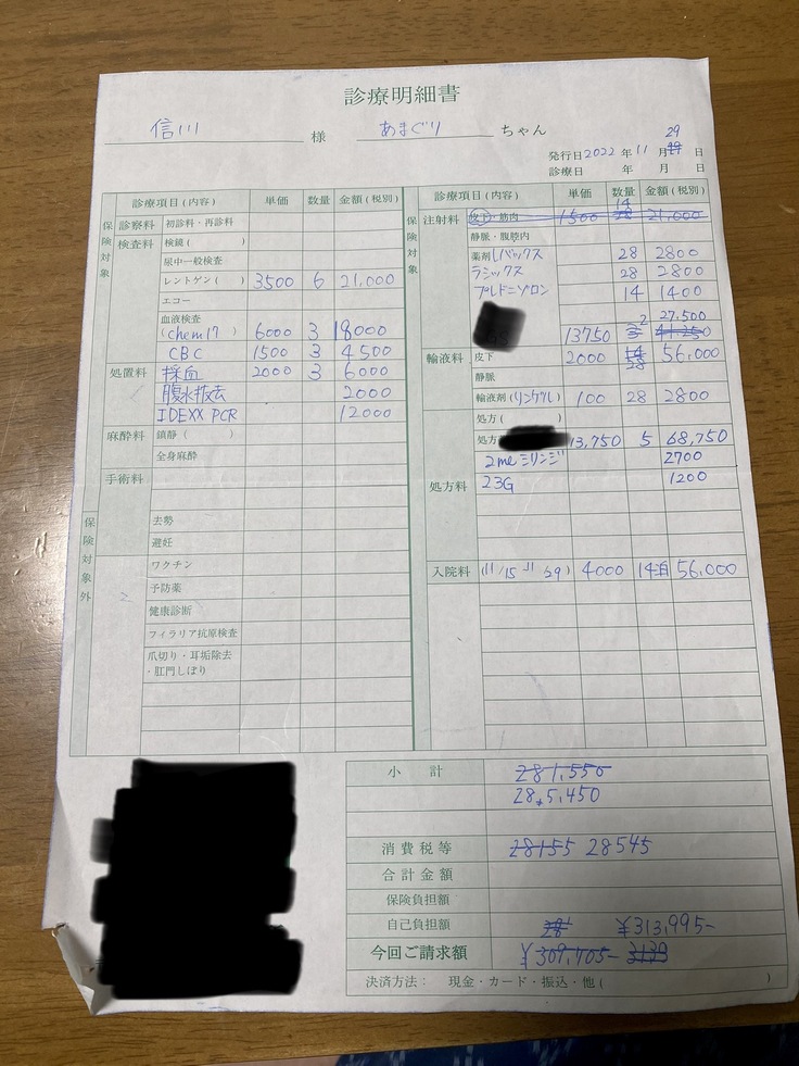 あまぐりは当時皮下注射治療中で、日本未承認の薬を84日間投与し続けなければいけませんでした。ただ未認可ということで保険適用外のため、非常に高額で、症状や体重によっても投薬量や金額が変わってきます。