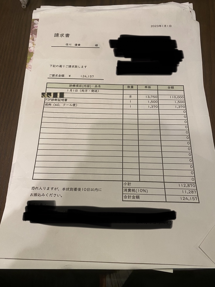 私自身、FIPという病気自体は認識がありましたが、まさか自分の飼っている猫が診断されるとは思ってもおらず、どこの病院でも治療ができるわけではないみたいで、かかりつけの病院では治療ができないと言われました。