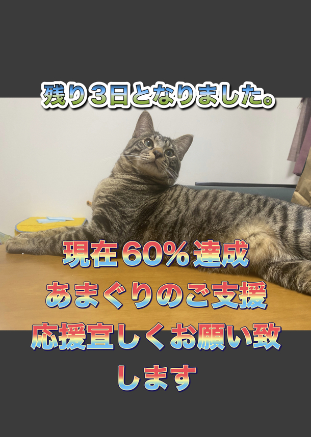 最後まで諦めずに頑張りますので、引き続き応援拡散のご協力よろしくお願い致します。