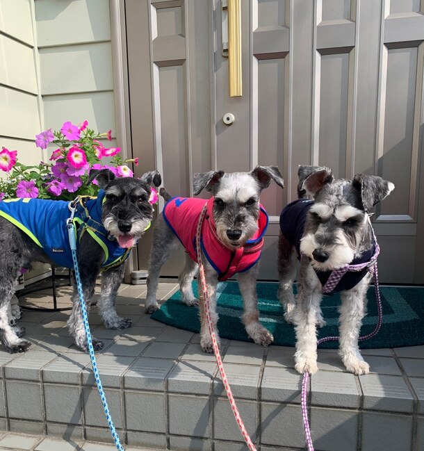 仲良しMシュナウザー3頭 網膜変性ライトちゃん
