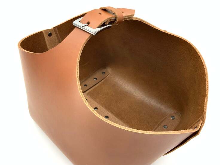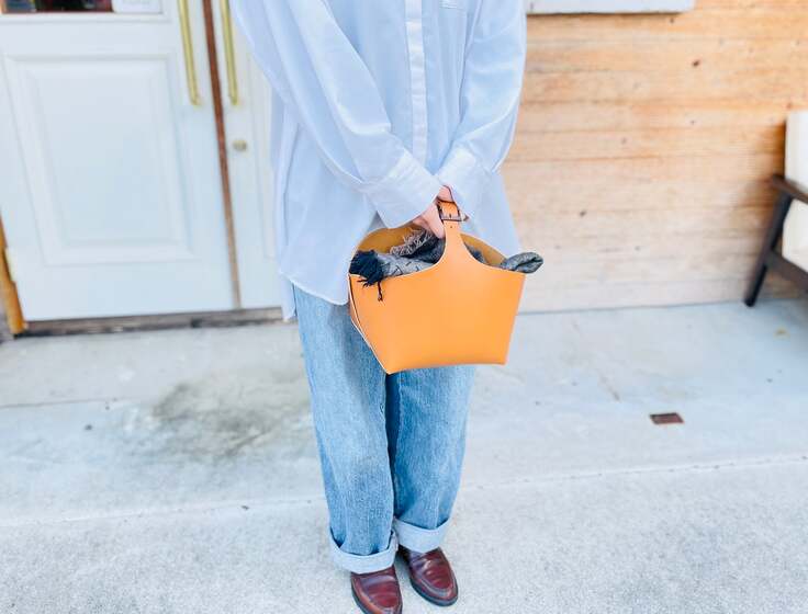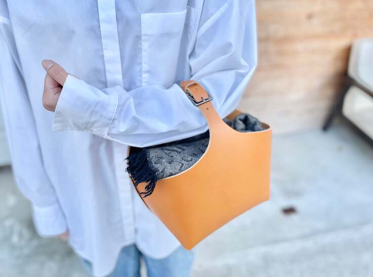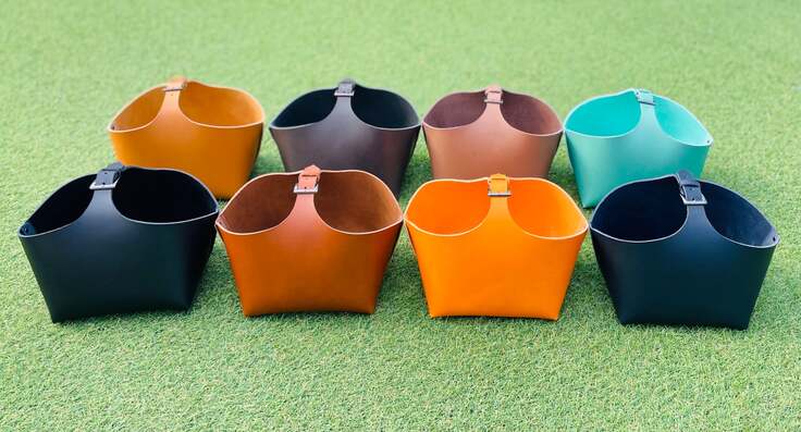 デッドストック革を愛着の湧くモノへ。3㎜厚の贅沢な本革バスケット!