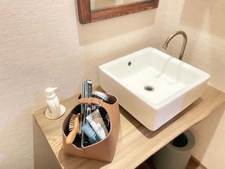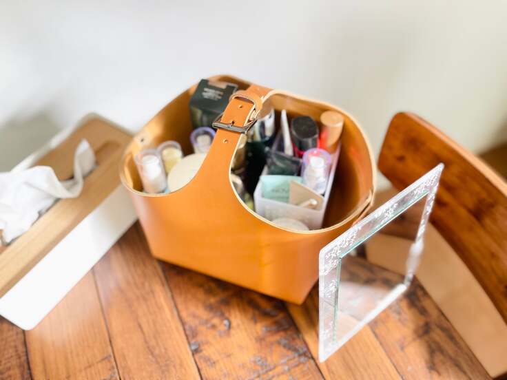 ついつい増えてしまいがちな化粧水やメイク品、、、毎日使うものなら手の届く所に置きたくなりますよね。でも、細々したものは散らかって見えがちです。そんな小物もこの本革バスケットなら、入れるだけでスッキリ。毎日を上質な暮らしにしてくれるアイテムとして、どんなインテリアにもスッと馴染んでくれます。