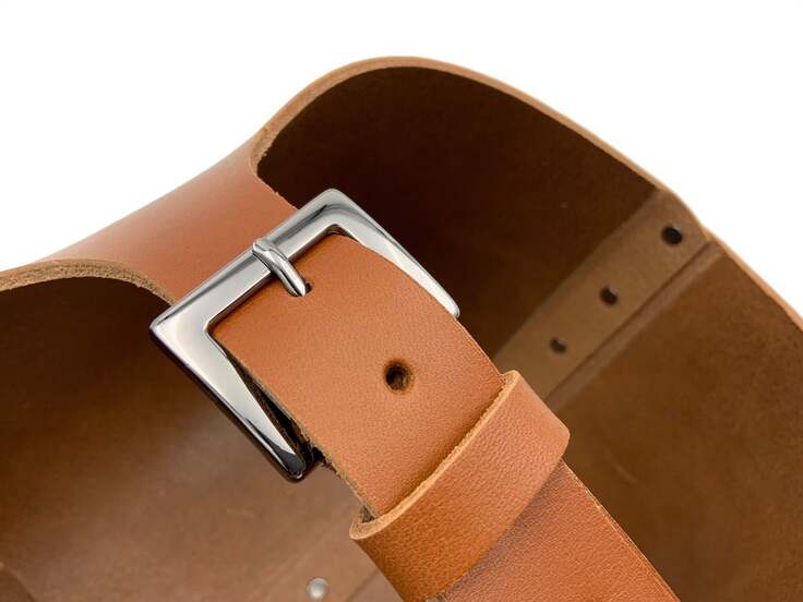 本来ならば、ベルトと本体部分のパーツは分けて、縫製や金具を入れる方が1枚の革に対して、たくさんのバスケットを作ることが出来、歩留りが良いのです。ですが、私はデッドストック革だからこそできる楽しみを皆様にお届けしたいので、美しい曲線ラインを優先しました。