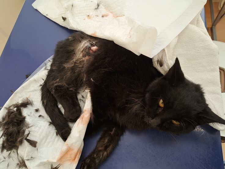 水を浴びせられた事で低体温症になっていたらしく、かなりの衰弱で今日一日がヤマですと言われました。先生にお願いして入院させてもらいなんとか峠は越えましたが、レントゲンを撮ってみると
