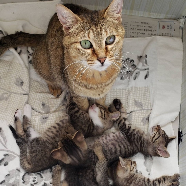 ある時保護した猫ちゃんは2週間後に9匹の子猫を産んだので驚きました。