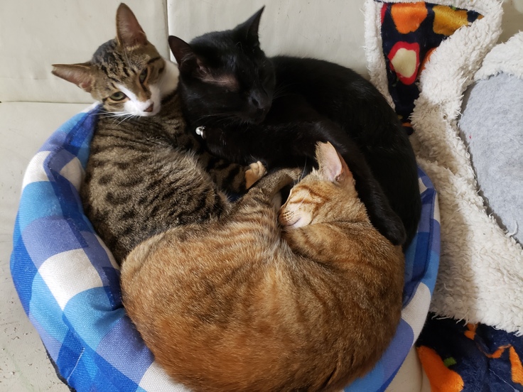 職場付近で保護した子や釣りに行った先でトンビに狙われケガをした子猫など、保護経緯は様々ですが大事な大事な家族です。