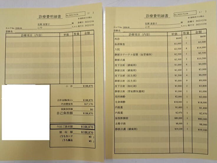 右後ろ脚断脚手術費用 188,870円