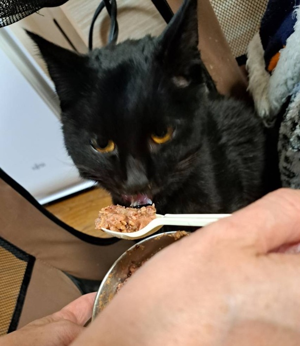 顎骨折で顎のズレと口蓋裂の為、ご飯はこぼす方が多くお口に入らない&お鼻に入ってしまってむせてしまうので介助が必要です。