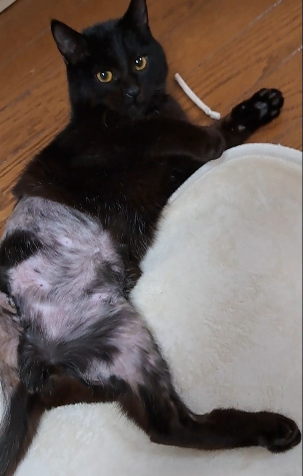 三本足になってしまったにやですが、保護した時が嘘のようにおもちゃで遊びおやつを食べ、おにいちゃん猫達を困らるほどやんちゃに育っています。