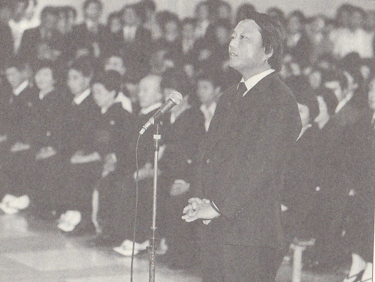 「植村直己に別れを告げる会」で挨拶する廣江研氏