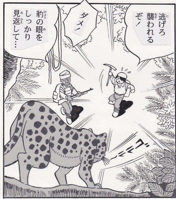 木の上から豹(ひょう)がねらっていた。植村絶体絶命のピンチ!