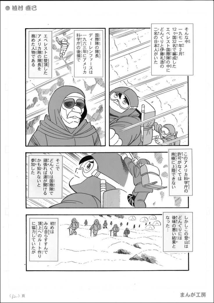 漫画「我が友 植村直己」は、植村直己と明治大学山岳部の同窓生である廣江研(ひろえ けん)氏の著書「我が友植村直己」をもとに制作されています。