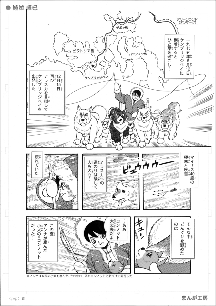 廣江氏は出張で忙しい仕事の移動中などに、親友植村直己との交流を多々メモ書きしていました。植村直己もいかなる時でも必ず日記をつけていたといいます。著者と植村の手紙のやり取りなど、当事者だからわかる詳細な内容も、貴重な記録です。その内容が素晴らしく、グリーンランドのエスキモーの村に移り住み、無理して生肉を口にする様子、8m余にも及ぶ長いムチを自在に操るまでの厳しい訓練など、この漫画でも多くのページを割いています。北極行などの極地探検では、犬ぞり用のエスキモー犬をムチで自在に操れることこそが、生死を分けることと理解できます。
